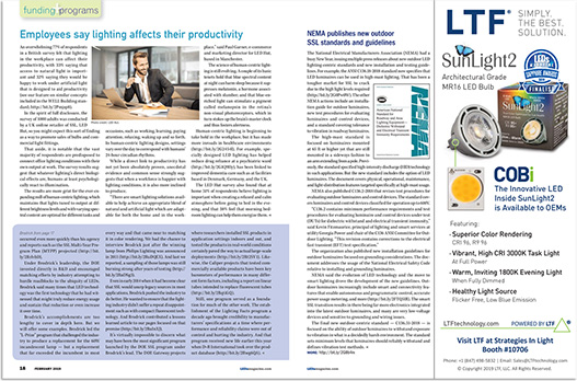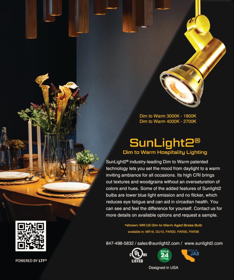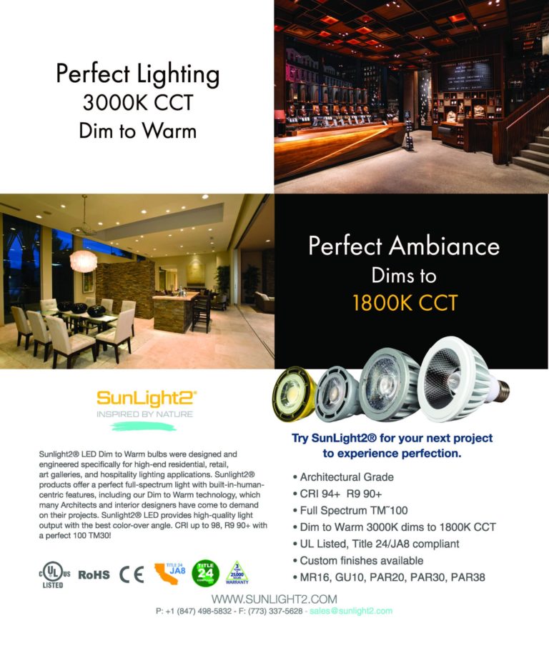 Ad for COBi High CRI Dim to Warm Chip on Board LEDs, the revolutionary light source inside SunLight2 Architectural Grade LED Bulbs. February 2019. View issue online >