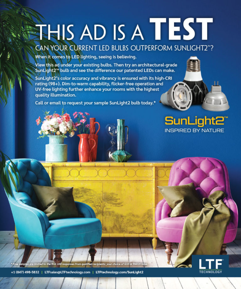 LTF’s full page print ad in Furniture, Lighting & Decor Magazine. July 2019.