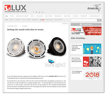 LTF’s SunLight2 MR16 LED Bulb (or Lamp as they call it across the pond) is getting glowing reviews from Lux Magazine. Could it be the halogen replacement we’ve all been waiting for? Read the article to find out!